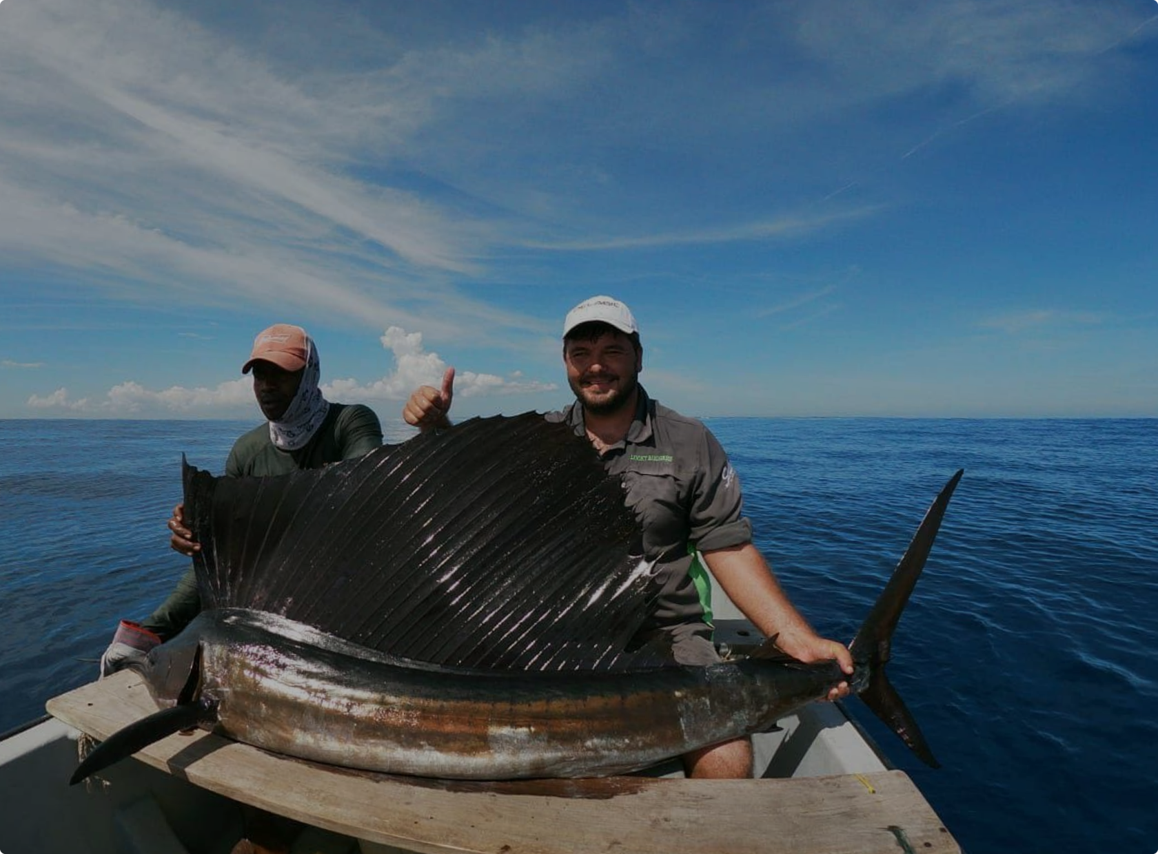 Pratichiamo la pesca etica, il che significa che rilasciamo specie rare, estinte o a crescita lenta come i pesci rostrati (marlin, pesce vela, pesce spada, pesce lancia a becco corto), squali, razze, carangidi, pesci di scogliera.